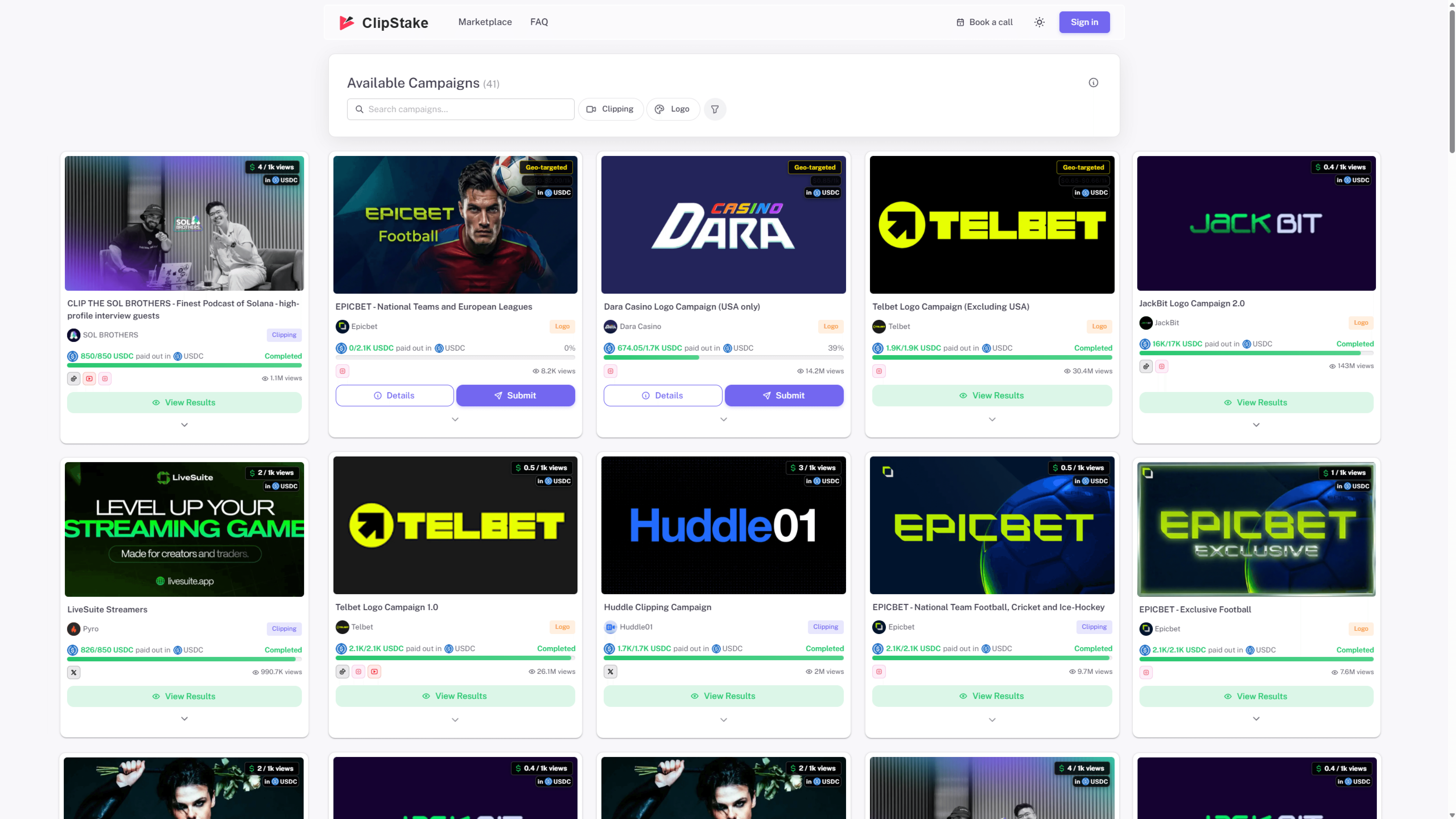 Browse the ClipStake marketplace for campaigns